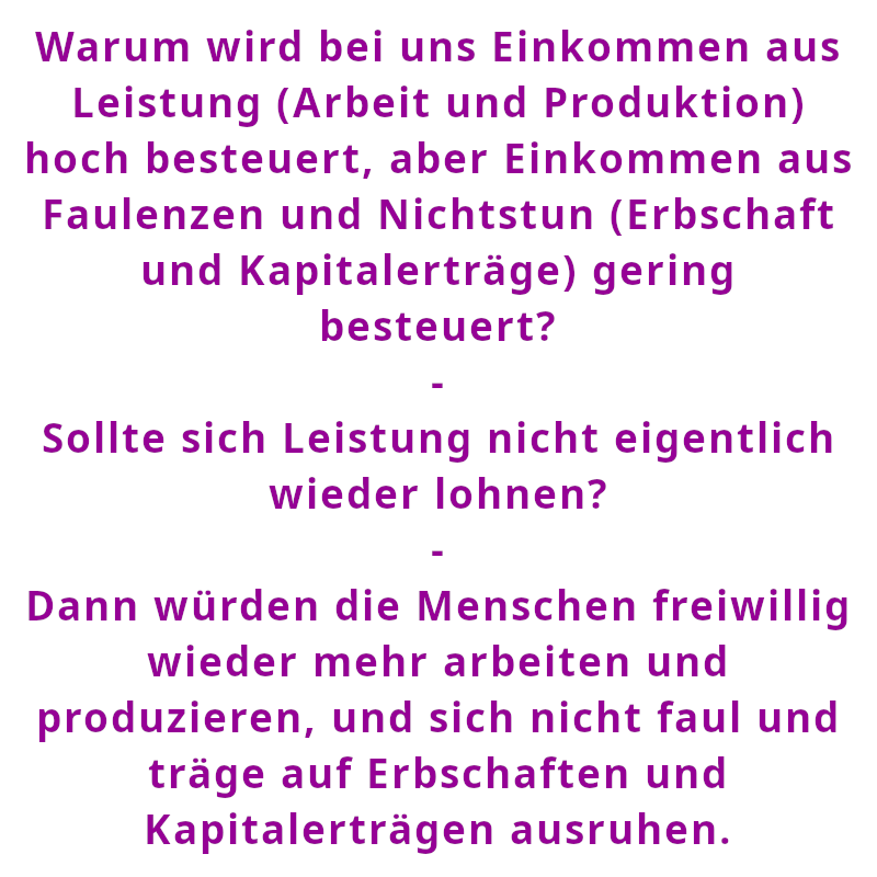 02. Oktober 2025 16:45 - 19:15 Uhr: 11 km Wanderung: Lauffen am Neckar - Hausen an der Zaber - Lauffen am Neckar / Warum wird bei uns Einkommen aus Leistung (Arbeit und Produktion) hoch besteuert, aber Einkommen aus Faulenzen und Nichtstun (Erbschaft und Kapitalerträge) gering besteuert? - Sollte sich Leistung nicht eigentlich lohnen? - Dann würden die Menschen freiwillig wieder mehr arbeiten und produzieren, und sich nicht faul und träge auf Erbschaften und Kapitalerträgen ausruhen. (Spruch - Thomas Numberger)